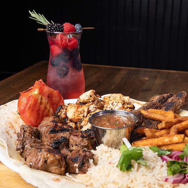 Marinated slices of New York steak, slow-roasted on a vertical spit with Middle Eastern spices for deep, rich flavor.