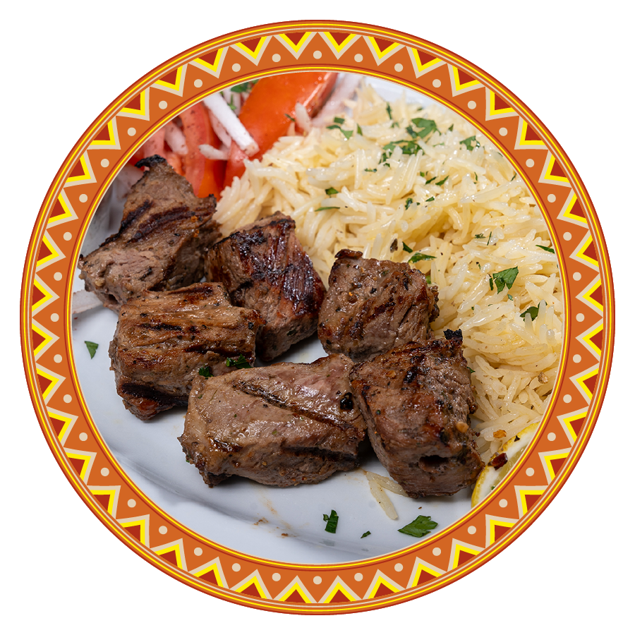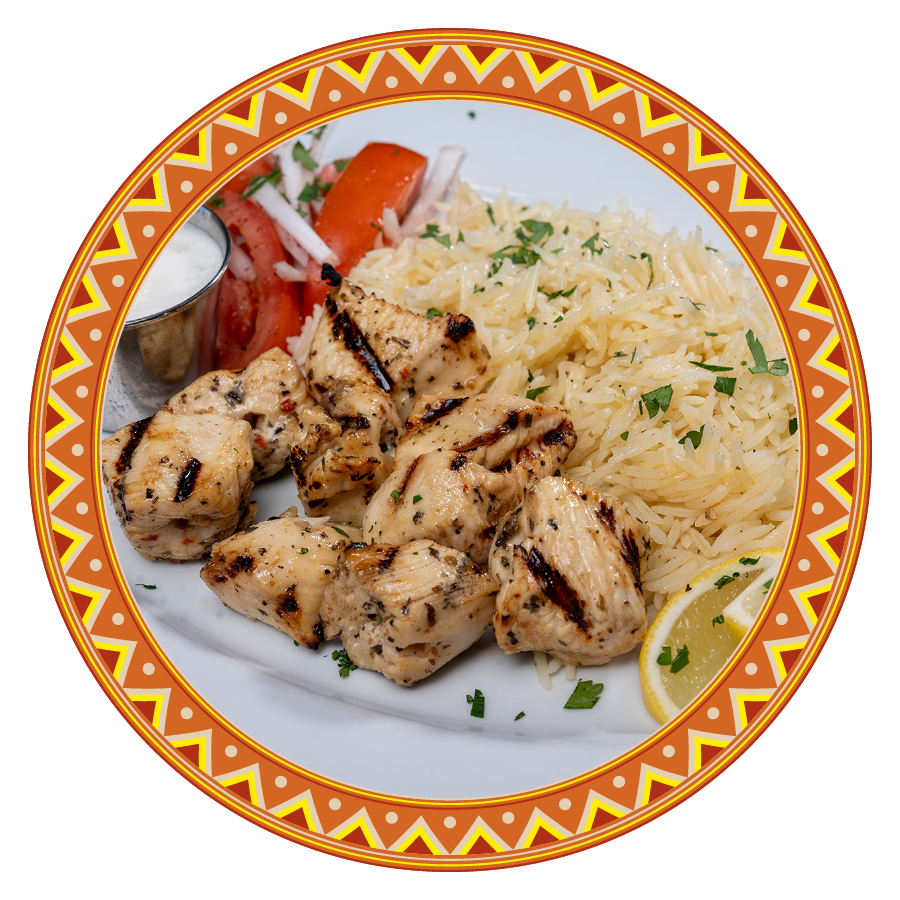 Tender chunks of chicken marinated in a blend of yogurt, garlic, lemon juice, and traditional Middle Eastern spices, then grilled on skewers until juicy and flavorful with arabic rice.