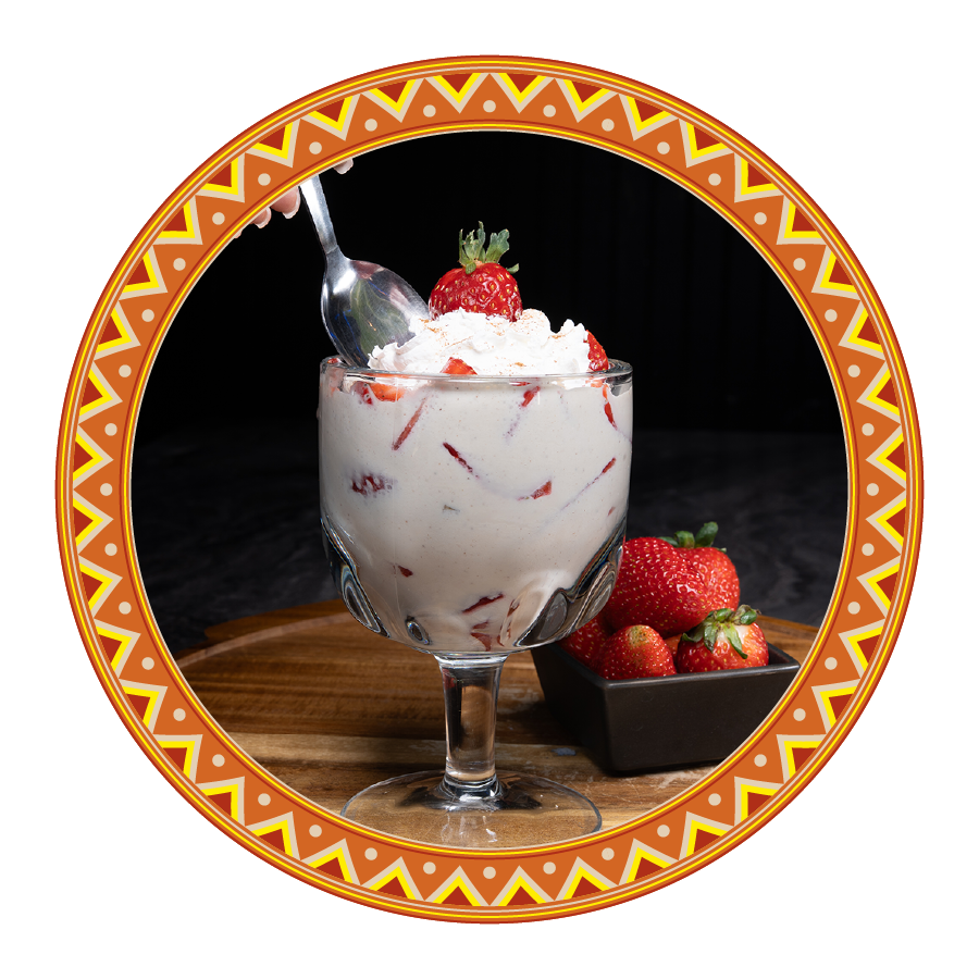 Homemade cream, fresh strawberries with a touch of cinnamon.