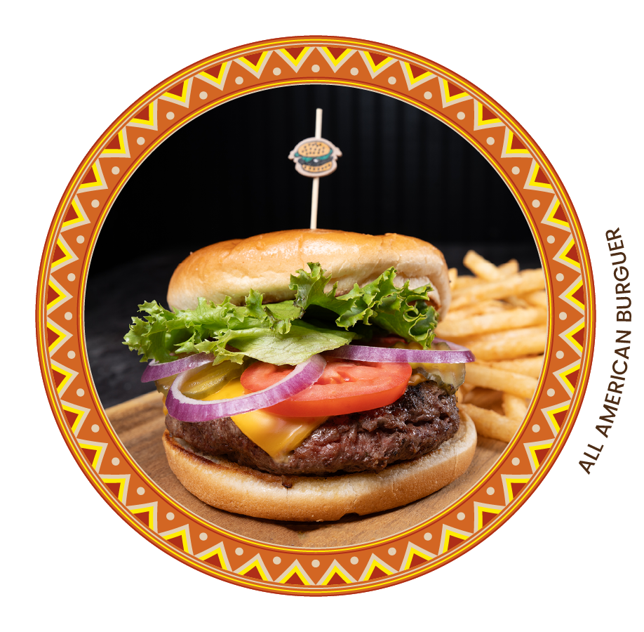 For Lovers of an ALL-TIME AMERICAN CLASSIC. 8 oz of ground beef, melted cheese, onions, tomatoes, lettuce and pickles, french fries Your choice mayonnaise, mustard or both.